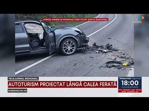 Accident grav pe DN7, în Vâlcea: un autoturism a fost proiectat lângă calea ferată.