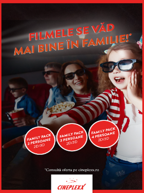 Pachetele Family Pack 2-3-4 persoane sunt disponibile doar la casele de bilete, sunt valabile pentru filmele de animație (2D și 3D) și implică prezența a cel puțin un copil. Promoția nu se aplică la avanpremiere.