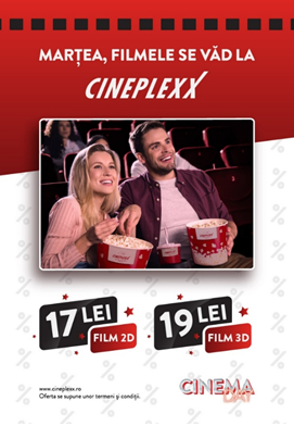 Așadar, la Cineplexx, în fiecare marți este zi de film și te așteptăm cu o selecție de filme care mai de care mai diverse, pentru ca tu să ai o experiență cinematografică desăvârșită.